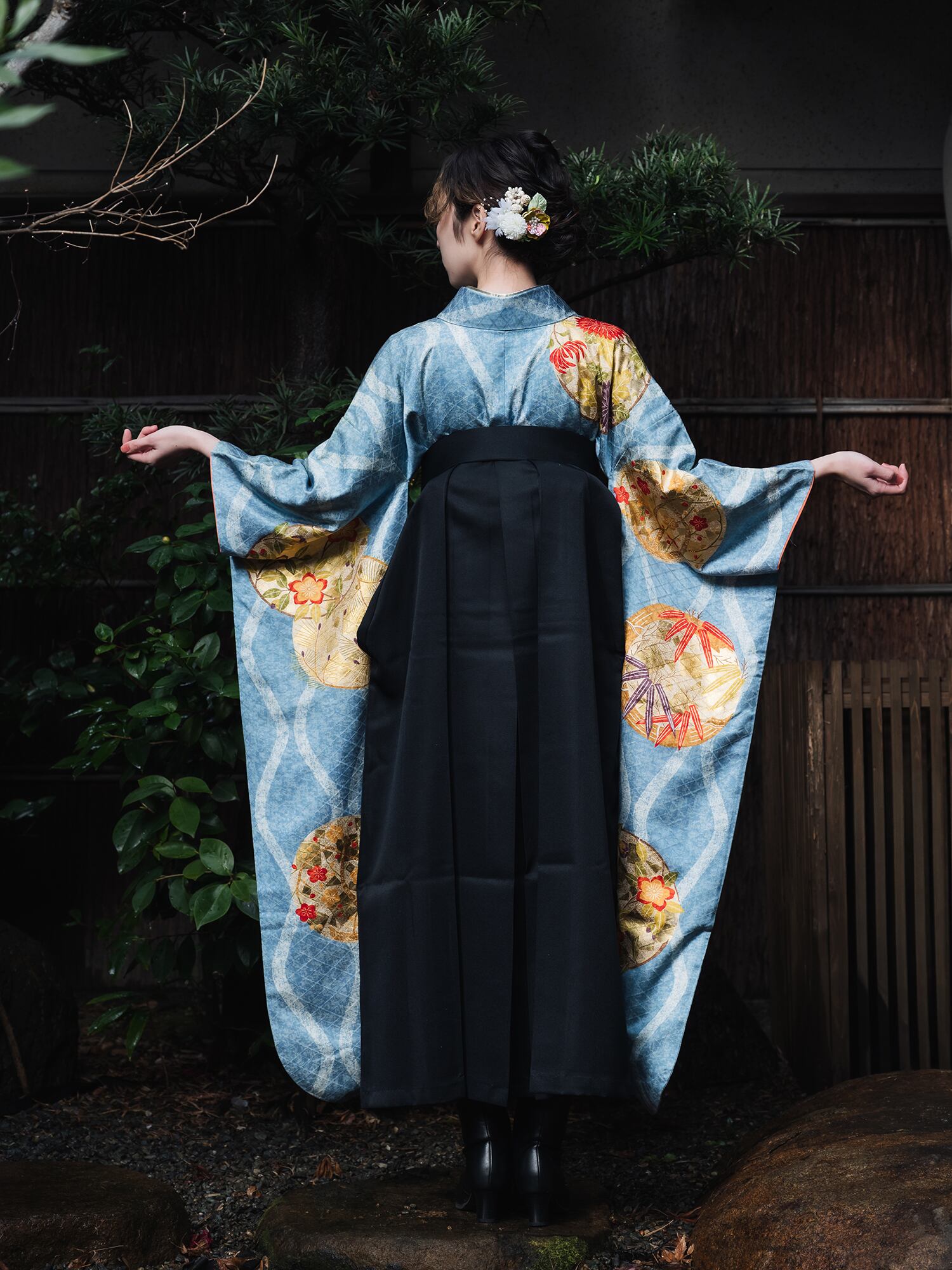 流行を追わない伝統的な美しさは時代を超えて愛され続けるものであり、袴との組み合わせにより華やかさと洗練さを同時に実現しています。