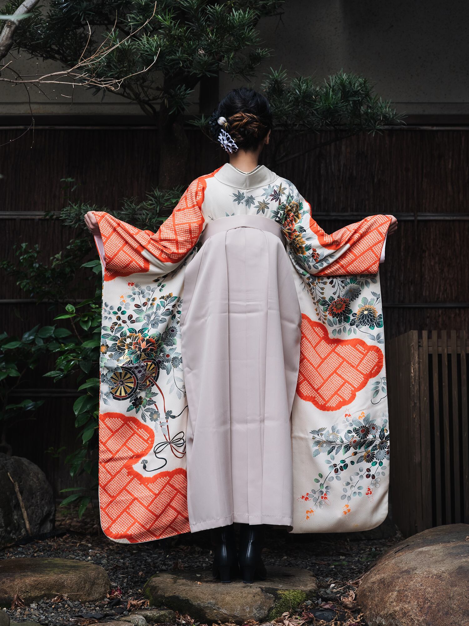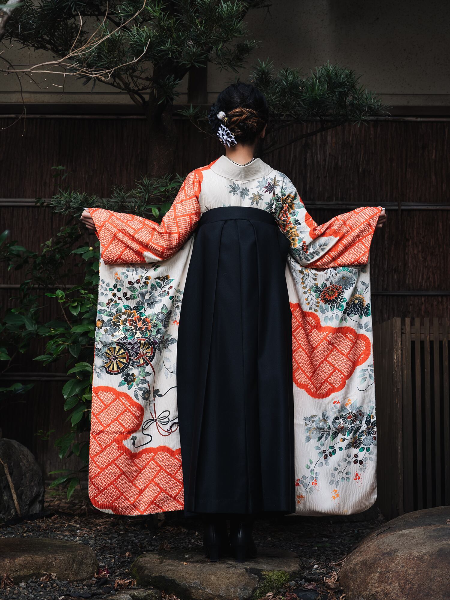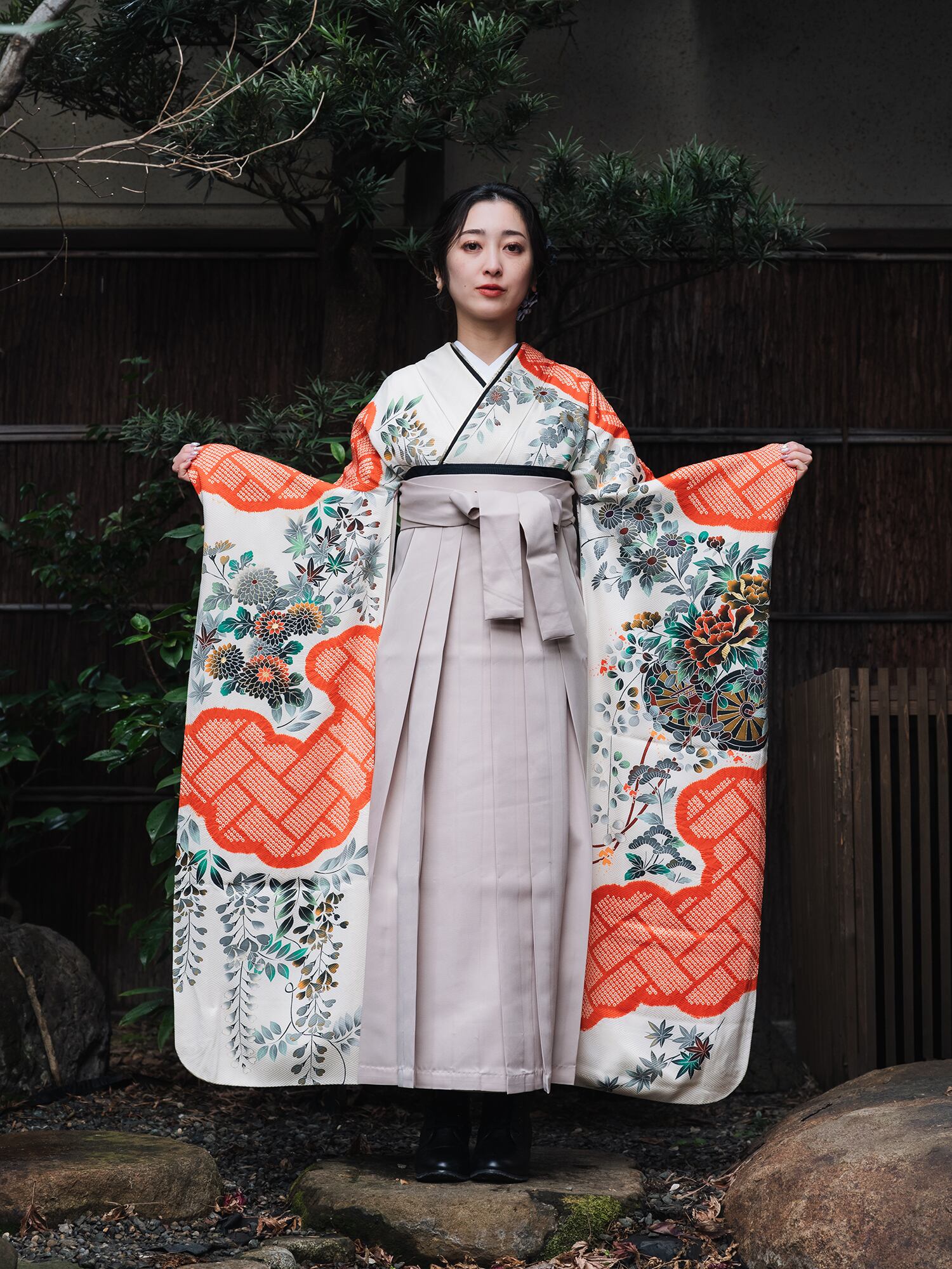 流行を追わない伝統的な美しさは時代を超えて愛され続けるものであり、袴との組み合わせにより華やかさと洗練さを同時に実現しています。