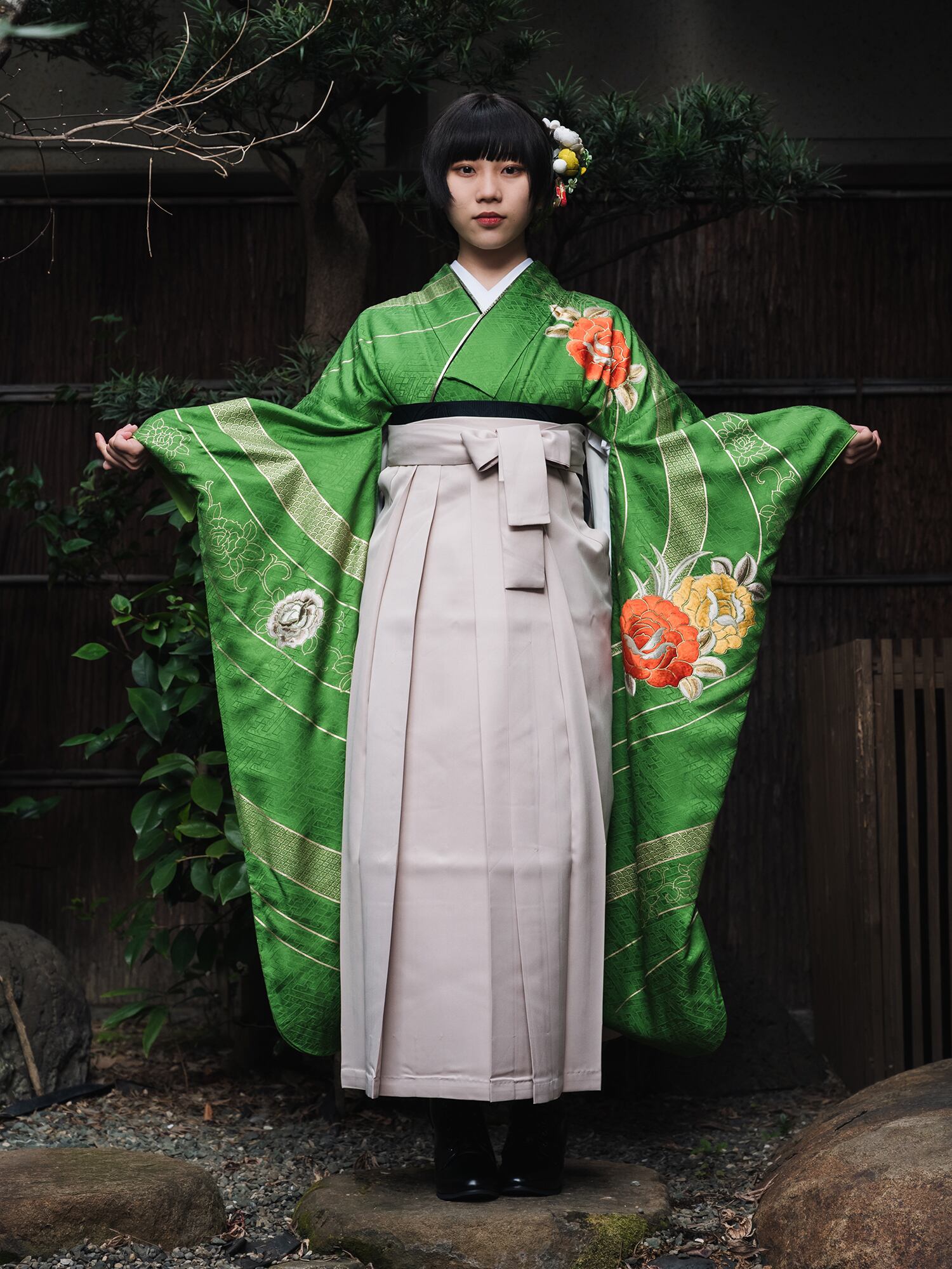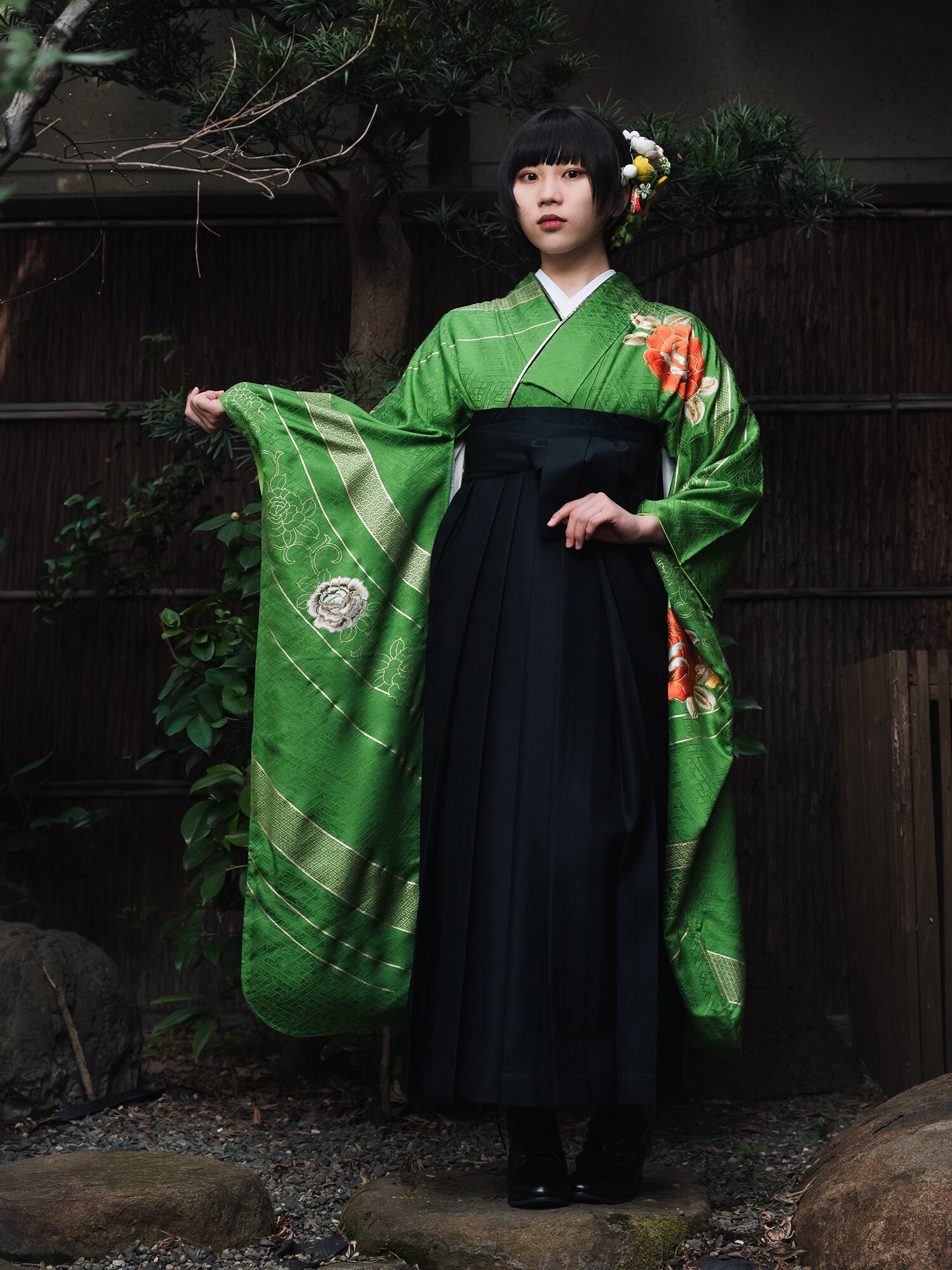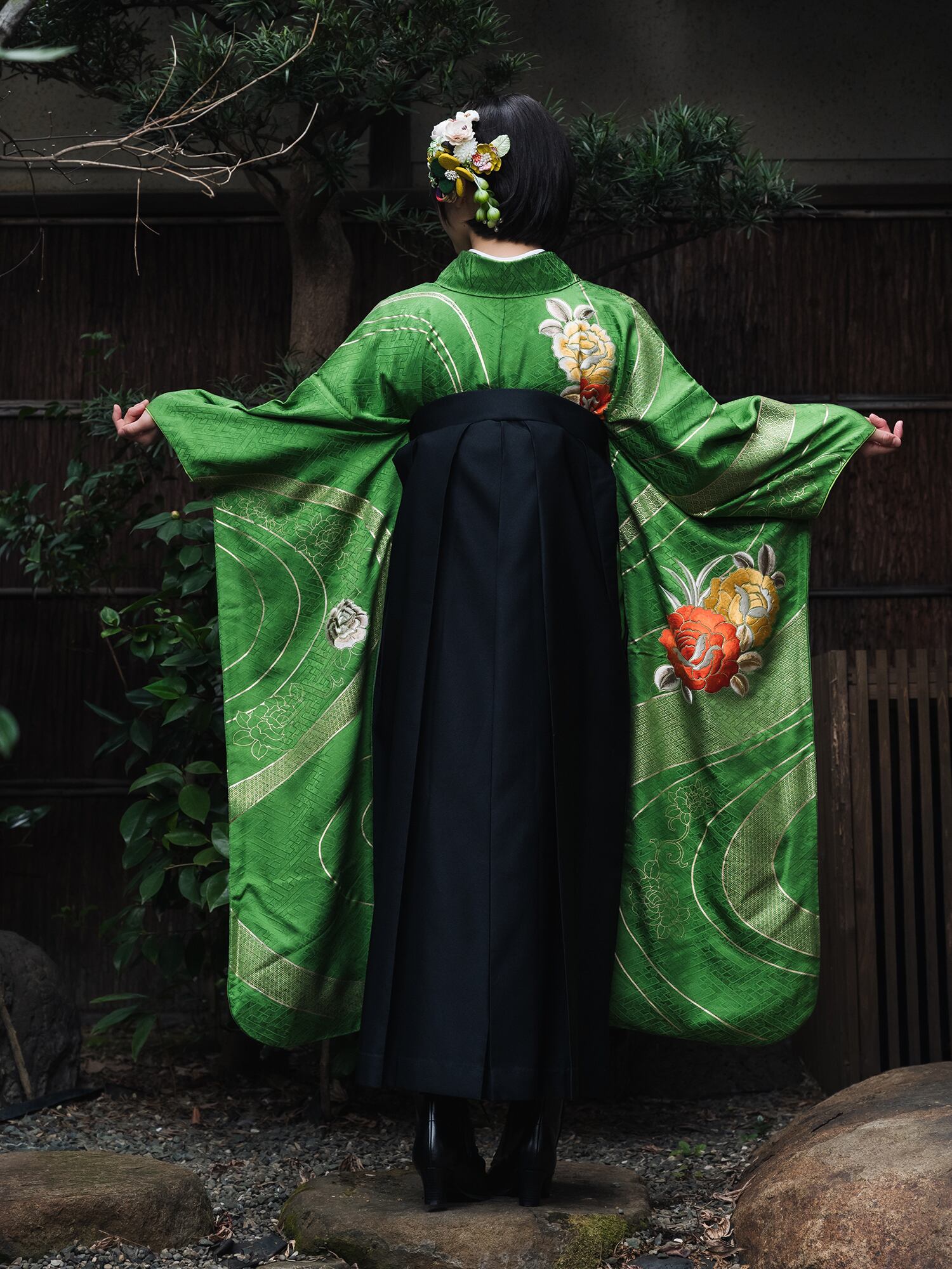 流行を追わない伝統的な美しさは時代を超えて愛され続けるものであり、袴との組み合わせにより華やかさと洗練さを同時に実現しています。
